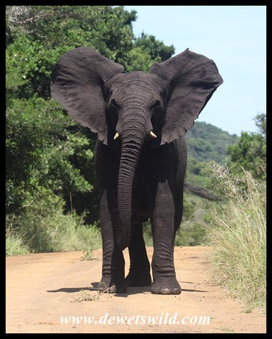 Young elephant showing off (photo by Joubert)