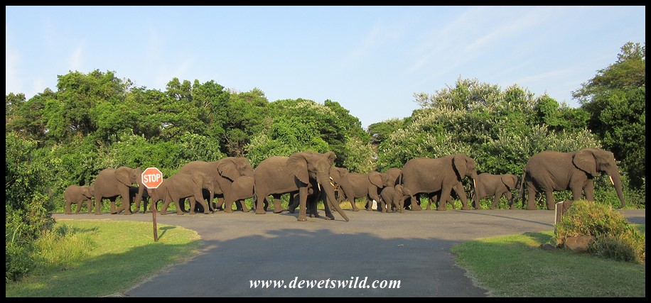 CapeVidal_24Mar2022_Dries (6) ← Previous Next → Elephant procession passing the turnoff to Mission Rocks (photo by Marilize)