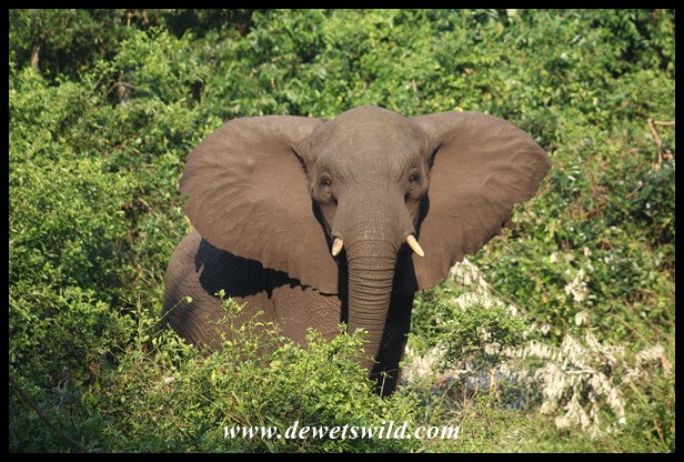 CapeVidal_24Mar2022_Joubert (4) ← Previous Next → Elephant cow emerging from the forest to find us in her way (don’t worry, we moved away quickly!)(photo by Joubert)