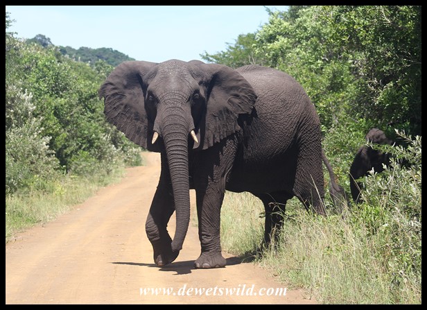 Elephants_EasternShores_23032022_Joubert (3) ← Previous Next → Another elephant cow stepping out of the thicket and into the road (photo by Joubert)