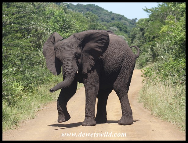 Elephants_EasternShores_23032022_Joubert (9) ← Previous Next → Young elephant showing off (photo by Joubert)