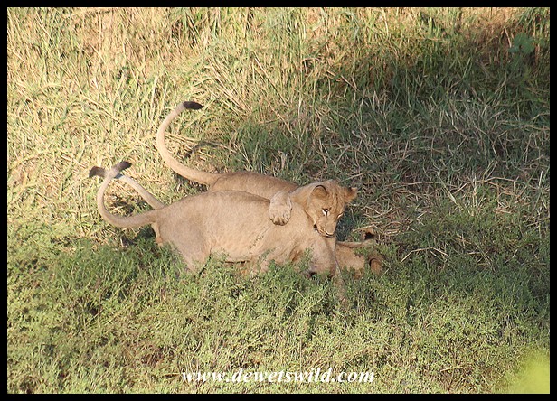 Playful lions along the Hluhluwe River (photo by Joubert)