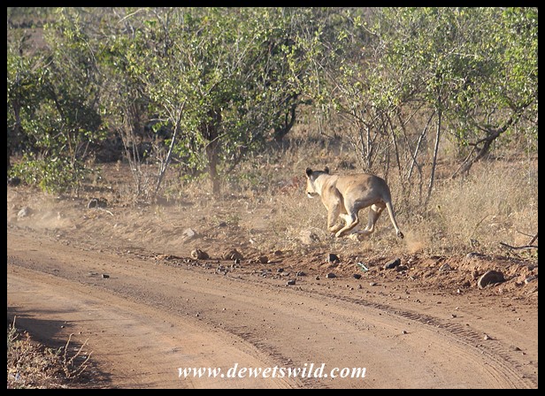 Lions_Mapungubwe_20220627_Joubert (2) ← Previous Next → Lioness chasing after warthogs (photo by Joubert)