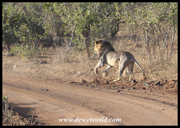 Lions_Mapungubwe_20220627_Joubert (3) ← Previous Next → Lion chasing after warthogs (photo by Joubert)