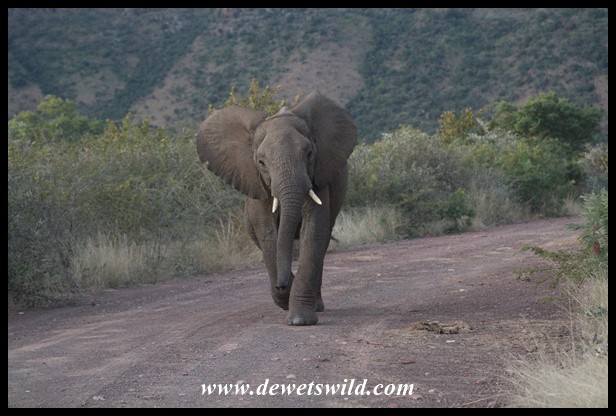 ElephantWalk_Marakele_20220629_Joubert (20) ← Previous Next → Elephant cow that made sure we were well and truly out of reach of her family (photo by Joubert)