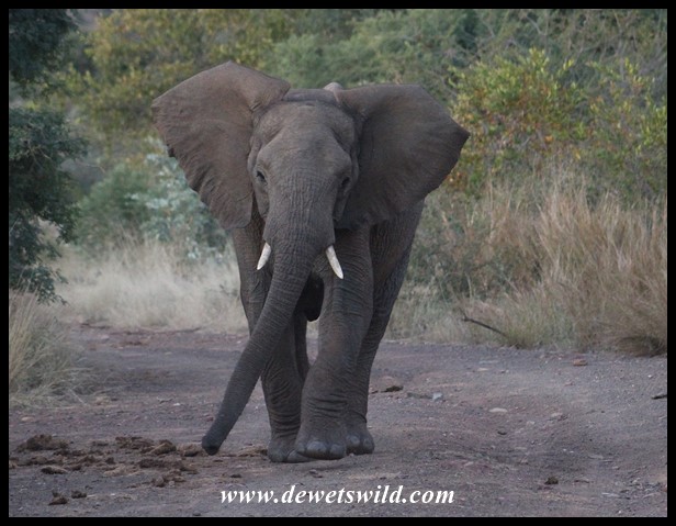 ElephantWalk_Marakele_20220629_Joubert (26) ← Previous Next → Elephant cow that made sure we were well and truly out of reach of her family (photo by Joubert)
