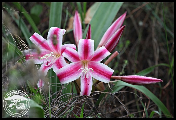 Candy-striped Crinum flowers