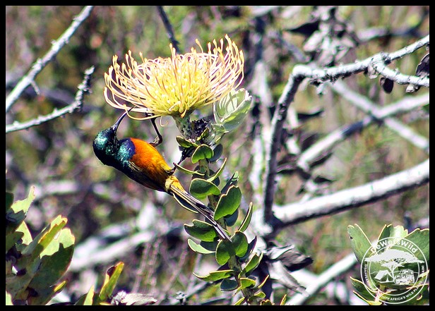 Orange-breasted Sunbird on a Pincushion flower