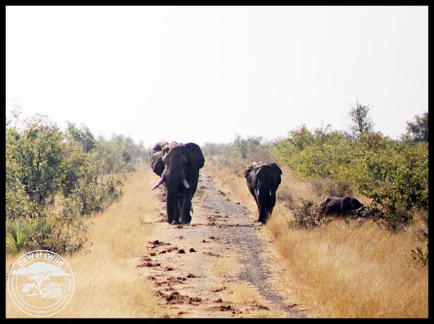 Elephants_KNP_Jun23_DdW (6) ← Previous Next → Elephants (and a buffalo to the side) making their way to the waterhole at Babalala