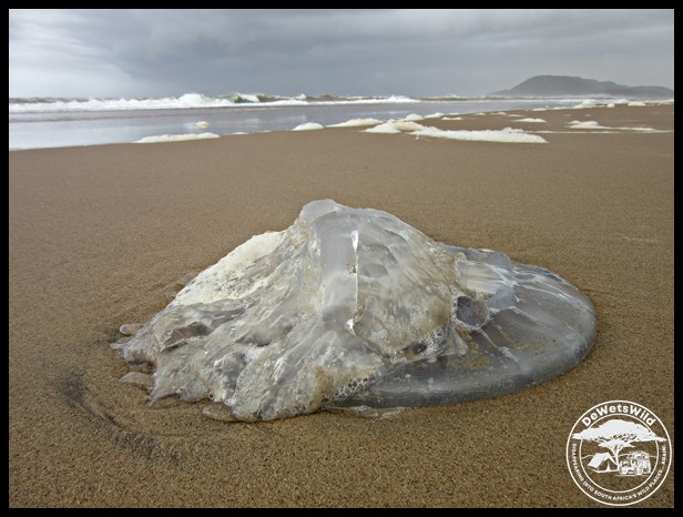 An enormous jellyfish that drifted out of a rough sea on the beach at St. Lucia