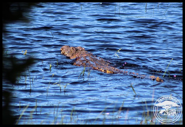 Huge Nile Crocodile slipping into the Mfabeni swamp