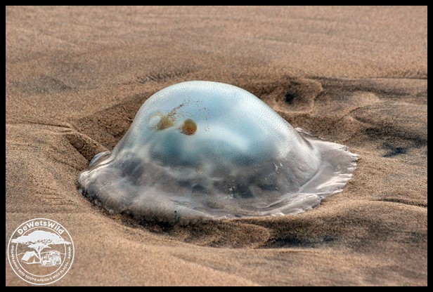 An enormous jellyfish that drifted out of a rough sea on the beach at St. Lucia