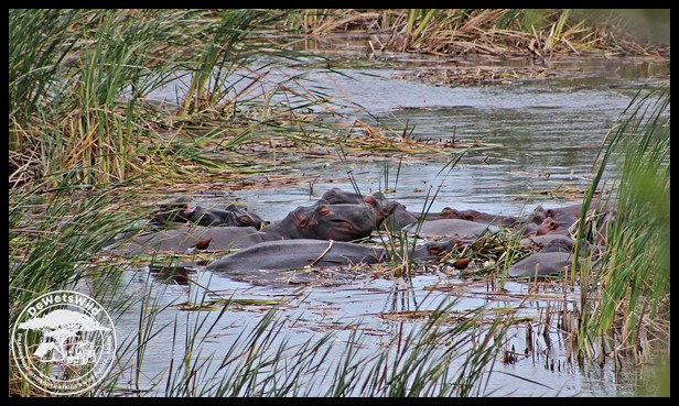 A pod of Hippos on the shores of Lake St. Lucia at Catalina Bay
