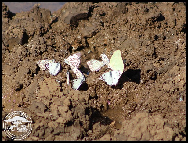 Butterflies_Mokala_Jun24_DdW (120) ← Previous Next → Brown-veined White and African Migrant butterflies congregating at a mud puddle