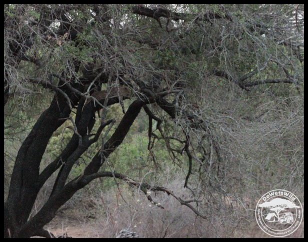 Female leopard lying on a branch – just look at the camouflage!