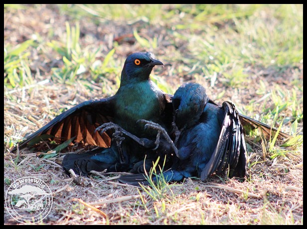 Cape Glossy Starlings in a vicious fight