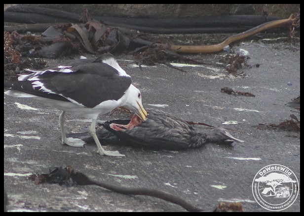 Kelp Gull feasting on a dead cormorant chick