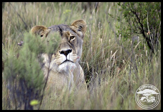 MtnZebra_Jan25_JdW (9) ← Previous Next → Lioness eyeing us and the buffaloes from the grass (photo by Joubert)
