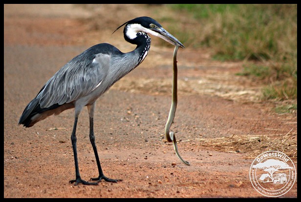 Black-headed Heron with a snake it caught