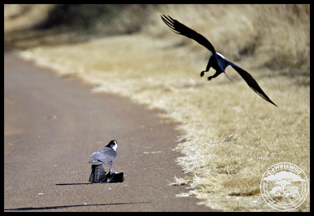 Rietvlei_20Jun2025_JdW (7) ← Previous Next → Black Sparrowhawk with a dove it killed being mobbed by a Pied Crow