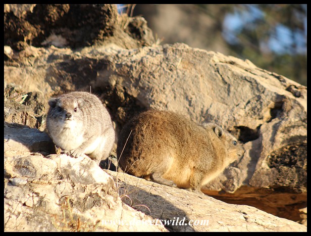 Yellow-spotted (left) and Rock Dassie (right) sharing the sun in Mapungubwe