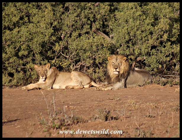During our recent visit to Mapungubwe National Park we left the environs of Leokwe Camp early one morning to go and explore the western reaches of the Park around the Maloutswa Pan, near the Limpopo Forest Tented Camp and Mazhou Camping Site. We were already close to our destination when we came across a mating pair of lions enjoying the early morning sun.