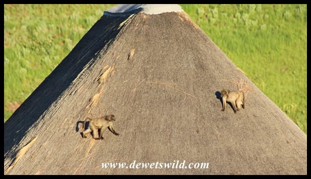 glen-reenen-baboons-14 ← Previous Next → Roofing thatch apparently make wonderful toys for little baboons