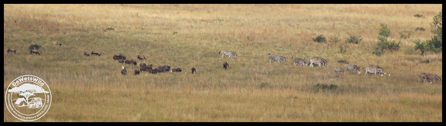Black Wildebeest, Plains Zebra and Blesbok share a hillside in Rietvlei