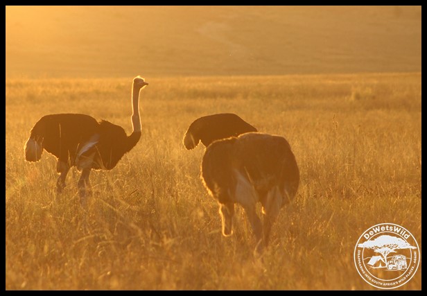 Ostriches at sunset