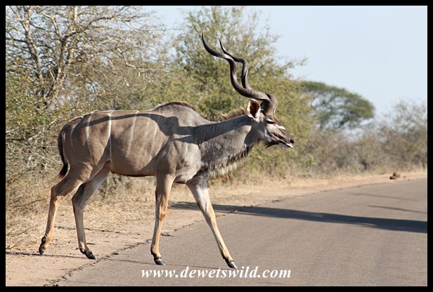 Kudu crossing the road