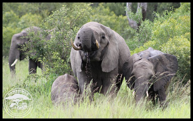Elephants drinking from a temporary stream