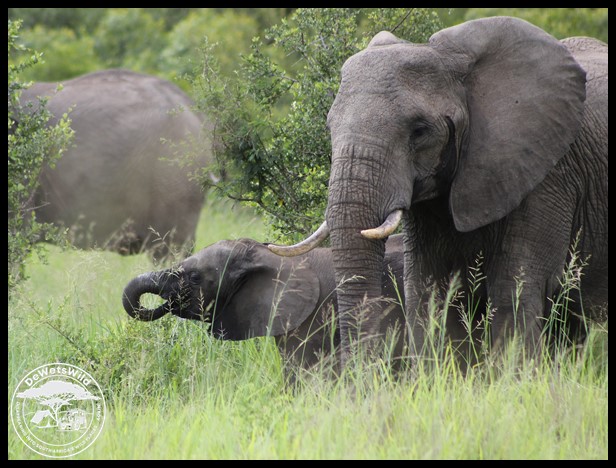 Elephants drinking from a temporary stream