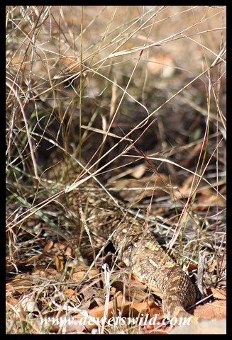 PuffAdder_Marakele_20220630_Dries (21) ← Previous Next → Puff Adder disappearing in the leaf litter at the side of the road