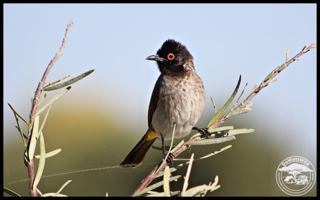 The African Red-eyed Bulbul naturally inhabits a variety of arid and semi-arid habitats, such as scrublands and thorny savannas, but has also become a familiar garden bird across its range and is usually found within easy reach of reliable water sources – in fact, the provision of man-made waterholes in farming areas have probably aided an increase in their population and an expansion of their range. They feed mainly on fruit, but will also include flowers, nectar, seeds and invertebrates in their diet. Adults grow to a length of about 19cm and weigh approximately 30g.