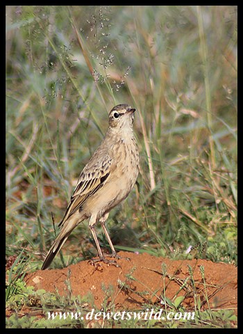 An inconspicuous inhabitant of dry, grassy plains with patches of bare ground as well as open pastures and recently burnt fields, the Buffy Pipit subsists on a diet of insects and seeds. They are usually encountered singly or in pairs, occasionally forming flocks in winter.