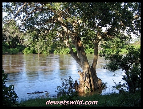 The Shingwedzi is a temperamental river; devoid of surface water for most of the dry season it can quickly swell to incredible dimensions after a deluge. We witnessed one such flash flood in January 2006; the pictures below were taken one day apart: