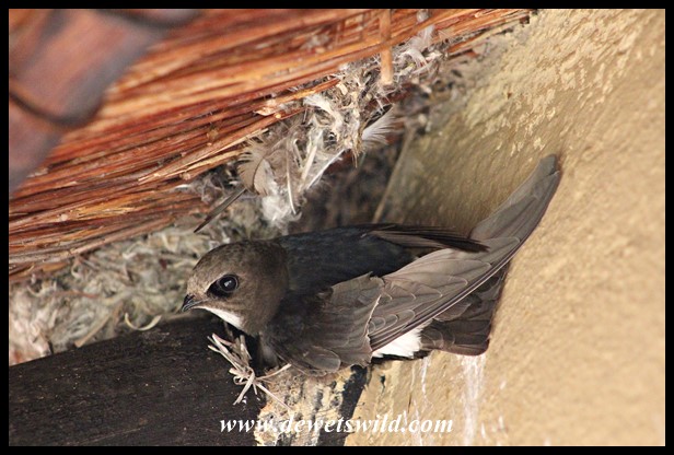 As mentioned already, Little Swifts build their nests, often in colonies of up to 30 monogamous pairs, in shelter provided by man-made structures like buildings, bridges and silos, though naturally they would utilise rocky overhangs and cliffs for the purpose. These nests are untidy conglomerations of feathers and plant material glued together with saliva and often used for several consecutive years. They breed in spring and summer, with both parents sharing the duty of incubating the clutch of 1-4 eggs over a 3-4 week period. The chicks stay in the nest until they’re almost 6 weeks old, but become independent very quickly thereafter. Fully grown Little Swifts weigh around 25g and measure only about 13cm in length.