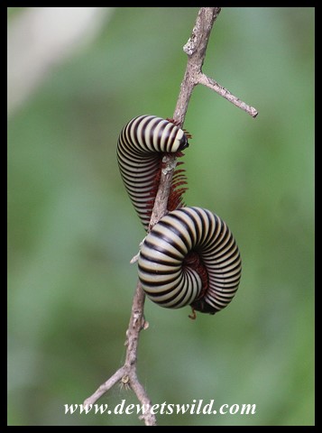 The most endearing trait exhibited by most species of Millipede, and also the primary protection measure they employ, is to roll into a tight coil that protects their legs and undersides. Others again may start wriggling manically to imitate a snake! Many species also excrete a noxious substance that make them unpalatable for almost all predators.