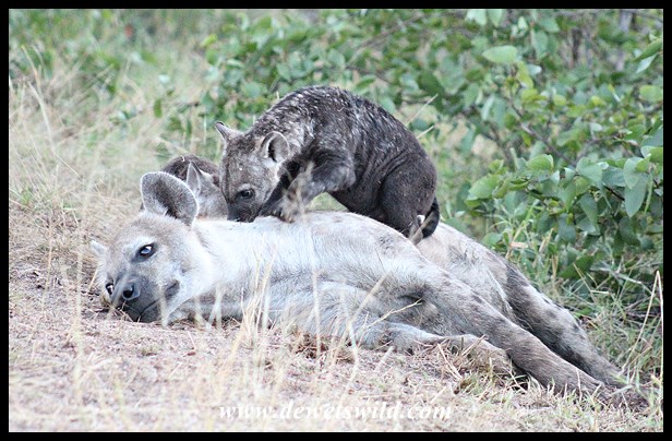 Spotted Hyena cub and mother