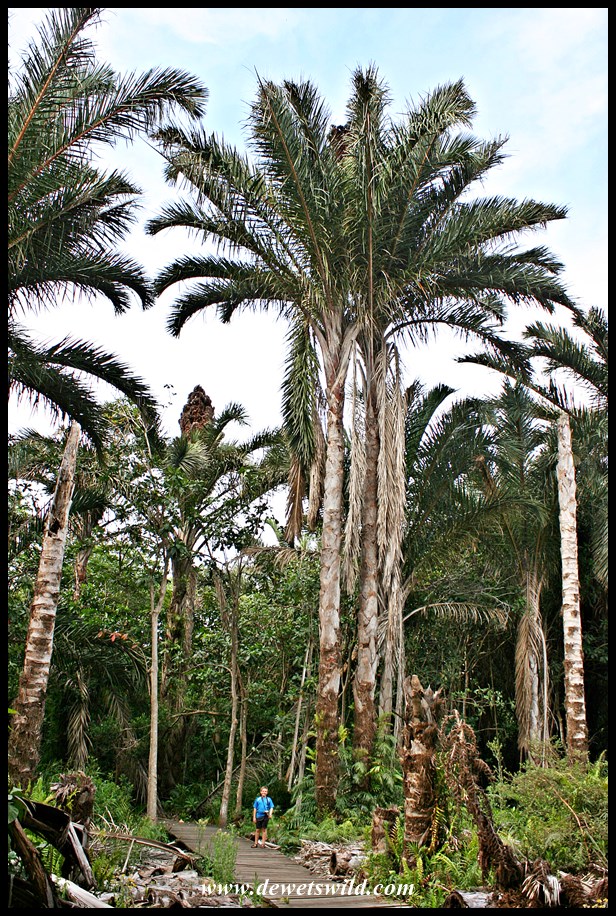 The Kosi Raphia Palm has an extremely limited distribution, occurring only in a few locations in southern Mozambique and around Kosi Bay in the extreme north-eastern corner of Kwazulu-Natal Province in South Africa. The total population of mature individuals number probably around 7,000 only, with the IUCN listing the species as vulnerable, and noting a continuous decline in their numbers due to habitat loss. In 1916 a grove of Kosi Palms were established in the town of Mtunzini, some distance south of their natural range, by the local magistrate. After becoming established and multiplying, Mtunzini’s Raphia Palm Forest was declared a National Monument in 1942. (You may want to click on the image below for an easier read)