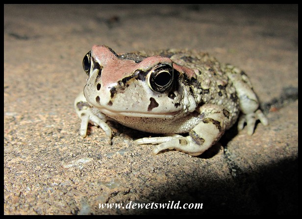 The Raucous Toad is a regular inhabitant of South African gardens, especially those with running water fountains, and its duck-like “quacks” will be familiar to many people. Its natural habitat preference is for permanent ponds, wetlands, streams and rivers in fynbos, grasslands, savanna areas and coastal forests, where they feed mainly on insects and other invertebrates. Adults grow to 11cm in length. Raucous Toads breed in the summer months, with males calling repeatedly in groups from the vegetated margins of their watery abodes to attract and mate with the females. The eggs are laid in long strings among aquatic vegetation, and may number over 10,000 per female! Tadpoles take 2 to 3 months from hatching to complete their metamorphosis.