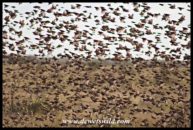 Some of the most impressive sights of our recent visit to the Satara area of the Kruger National Park was the enormous flocks of Red-billed Quelea occupying the grasslands of the central plains. Following the good rains that bought respite from an awful drought, the savannas are heavy with a rich harvest of seeding grasses, and literally millions of the little birds are making the most of the abundant foodsource. When their population reaches a peak, as it currently has, there could be as many as 33-million Red-billed Queleas swirling in cloudy swarms over the Park!