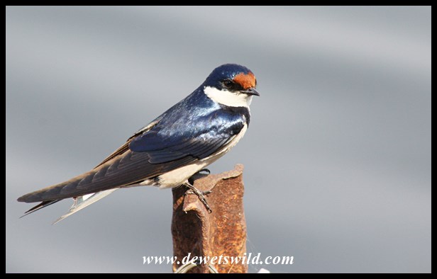White-throated Swallows breed in our southern climes between August and March (peak between October and December). Pairs are monogamous and can raise multiple broods in a season, often returning year after year to the same nest. Their nests are small mud-cups lined with grass, fur and feathers, built against vertical surfaces (both natural and man-made) and often placed under overhanging rocks, bridges or roofs. Clutches of between 2 and 5 eggs are incubated for a little over 2 weeks, with the hatchlings fledging by about 3-4 weeks old and becoming independent about two weeks after that.